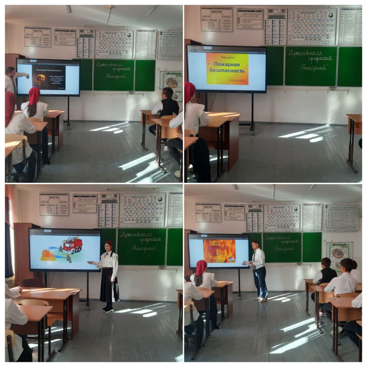 «Пожарный – опасная и благородная профессия. Случается, что огонь воспламеняется по случайности или по неосторожности, и мы знаем, что пожарные быстро приедут на помощь». - обратился в начале своей беседы учитель ОБЖ к обучающимся.