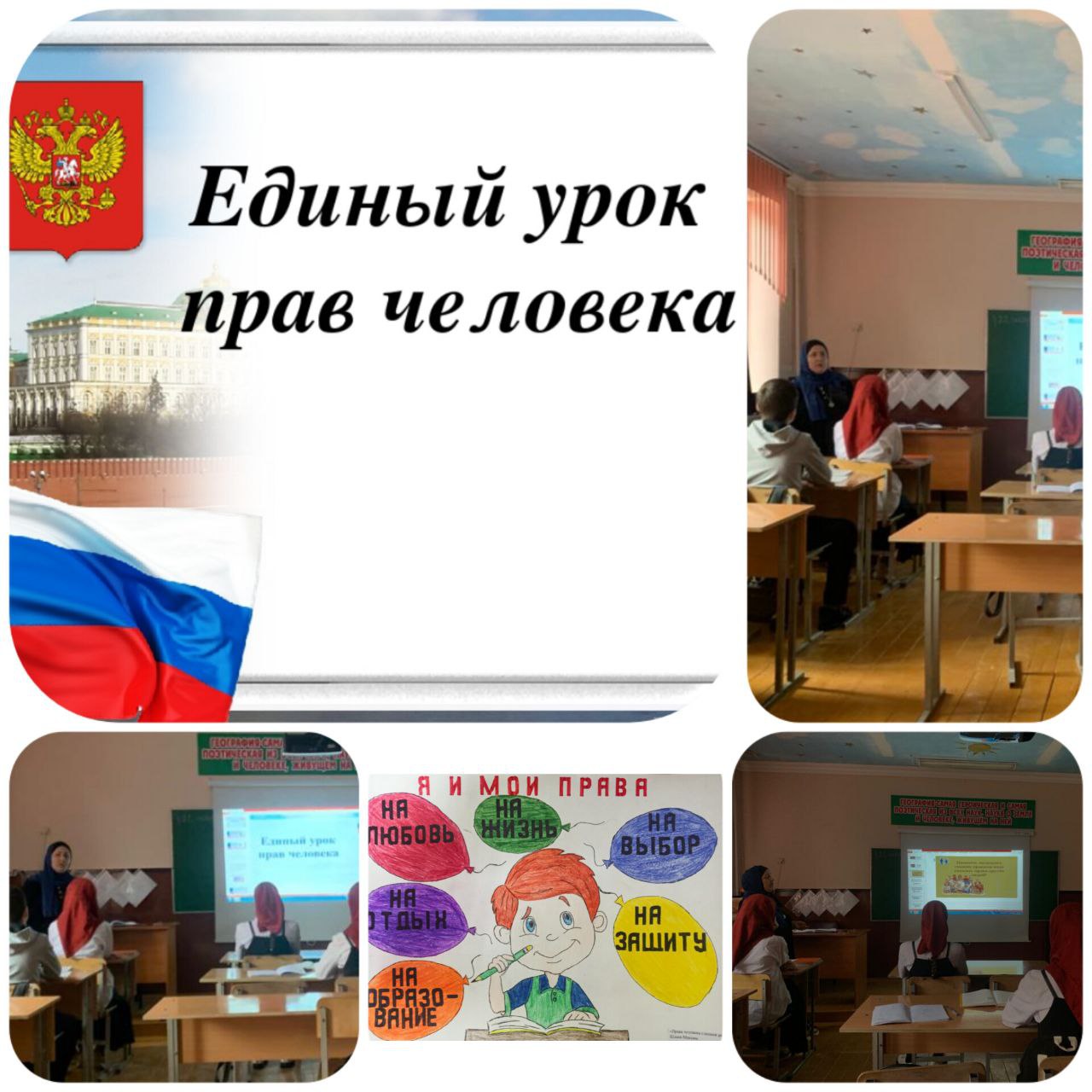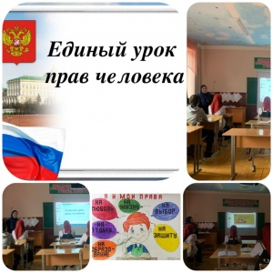 14.12.2022В рамках празднования Международного дня прав человека во всех классах была организована акция - Всероссийский единый урок «Права человека», направленная на формирование правовой культуры молодых граждан нашей страны.По формату Единого урока были проведены классные часы, творческие и интеллектуальные викторины. в 8 классе (https://pandia.ru/text/category/9_klass/) Татаевой Ш.Д. был проведён классный час «Конституция РФ» в сопровождении компьютерной презентации. Цель урока: сформировать представление учащихся о первых попытках введения конституционного правления в России и начале демократического конституционализма. В начале урока классный руководитель рассказала о влиянии движения декабристов в распространении идеи конституционализма в России, привела сравнение первых проектов Конституции России. Вместе с учащимися обсуждалась проблема «Почему во времена Александра I Конституция не была принята?».