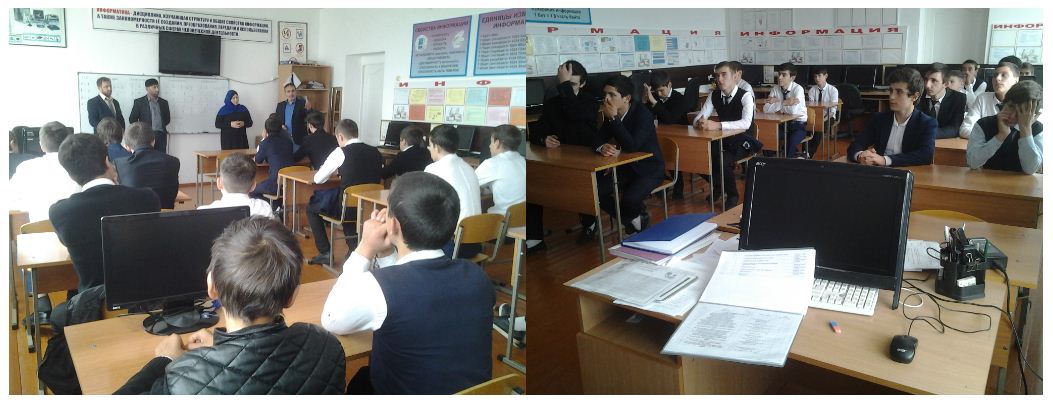 поручения Главы Чеченской республики Р.А. Кадырова от 16.11.2015г. Номер 01-51, провел мероприятие по профилактике экстремизма и терроризма с учащимися 10-11-х классов (мальчики), всего 21 человек. Тема: "Ислам -религия мира и добра"