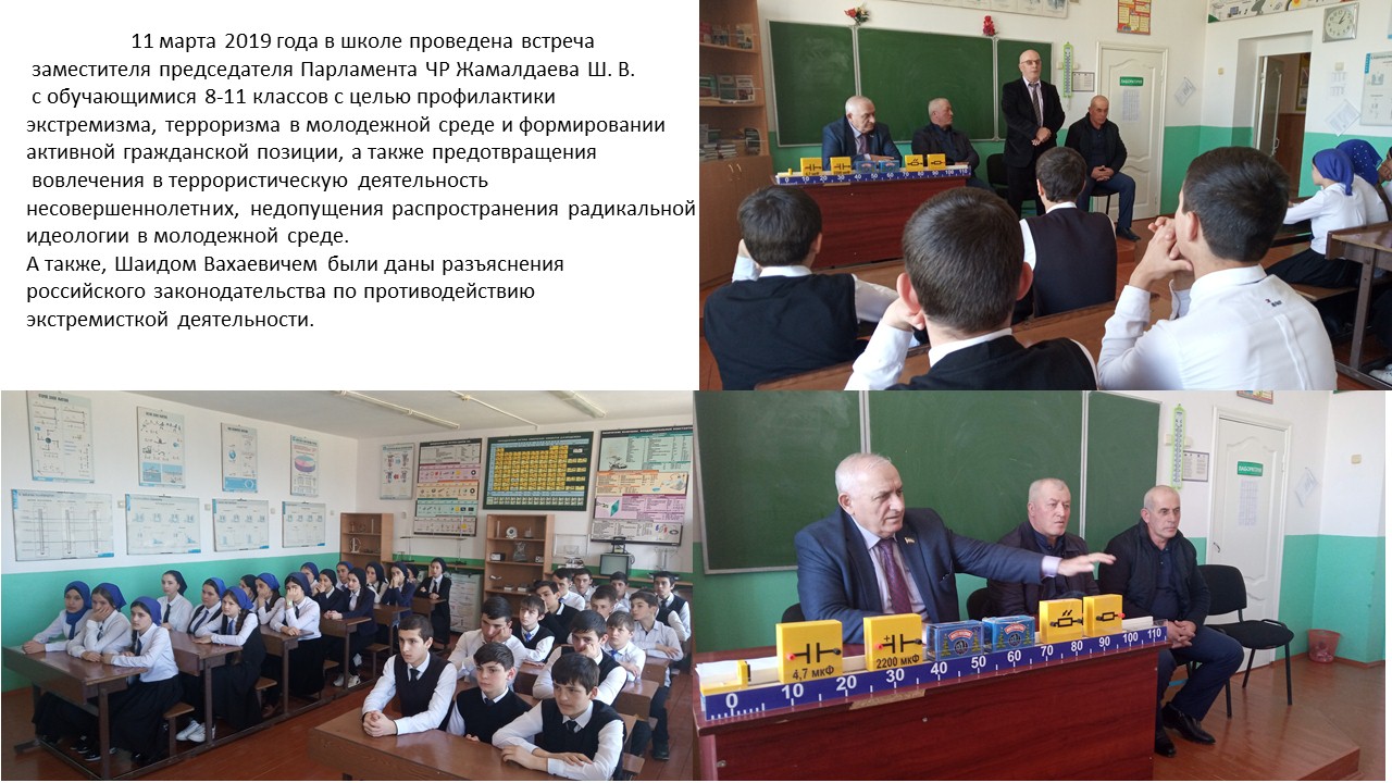 11 марта 2019 года в школе проведена встреча заместителя председателя Парламента ЧР Жамалдаева Ш.